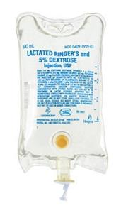 500 ML/EA 24 EA/CA^ 5% Dextrose and Lactated Ringer's Injection, USP. 500 mL. Plastic. Latex Free. 500 ML/EA 24 EA/CA