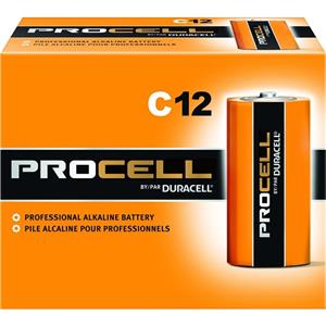 Alkaline Battery Duracell® Procell® C Cell 1.5V Disposable 12 Pack, 12 EA/BX 6 BX/CA
