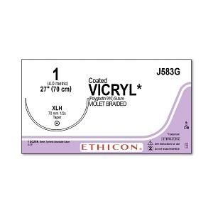 Absorbable Suture with Needle Coated Vicrylâ„¢ Polyglactin 910 XLH 1/2 Circle Taper Point Needle Size 1 Braided 27 Inch Violet, 12 EA/BX