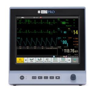 EA^MDPRO by MTMC 12“ Touch Screen patient monitor with CO2,WiFi, & 8GB internal memory. Standard configuration (ECG,NIBP, SpO2, RESP, 2-Temp, Pulse Rate & open IBP ports).Internal G2 Sidestream CO2 uses traditional water traps & generic cannulas